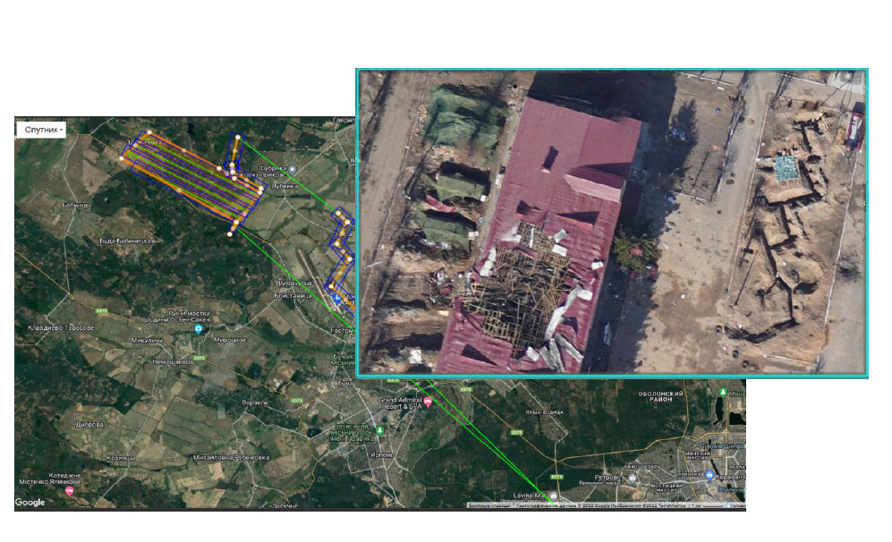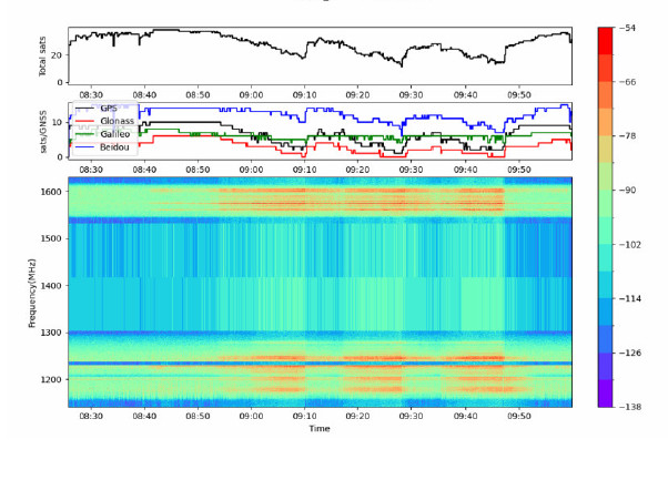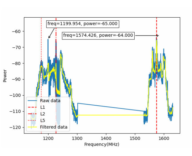 похибками що не перевищують значення 1…3 м навіть в складних умовах роботи сучасних засобів РЕБ. Означена точність дозволяє БПЛА надійно працювати на всій лінії зіткнення під час потужної роботи засобів РЕБ та отримувати якісно прив’язані за координатами цифрові знімки місцевості. Крім основних функцій приладу, його використання дозволяє після польоту проаналізувати поточ- ну завадову з побудовою частотної мапи завад.